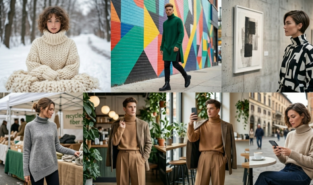 How to Style Fitted and Loose Turtleneck Sweaters Differently